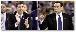 Coach K. Not happy. After leading by 6 at half-time, #1 Duke defense disappeared and the Blue Devils fall to #5 Arizona. No soup for Duke. And no repeat.