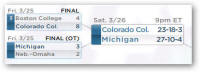 Here's some late-breaking Hockey news for all you NCAA Frozen Four fans - Michigan has spanked Colorado College 2-1, earning a berth in the Frozen Four in St. Paul. They'll meet the winner of the North Dakota - Denver game tomorrow in a match-up of the two dominant collegiate hockey conferences, the WCHA and the CCHA.
