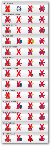 TechGuy has 1st prize locked up, but since we don't know who he is nor where his $10 went, we're still deciding if he gets a payout. Not likely at this point. In any case, we'll be spreading the payout schedule deeper than ever and are looking to pay out to all finishers in the top 10. It's really too bad when pool participants can't seem to follow the simple instructions and get their money in on time and with a clear list of which sheets they are paying for. They think Carnac the Magnificent is running this pool with nothing else to do for a month.